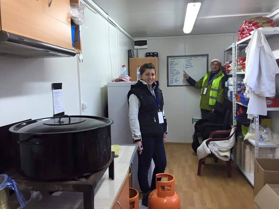 To finish I would like to introduce you Faire: She is here from Preševo and cooks every afternoon and evening the soup called Chorba. They know this from their home country. For more than one week now our fantastic new kitchen container is in service. We have tea, bread, eggs for children and bananas for babies. Furthermore we have a children’s corner with some toys and we get every day new drawings as presents.