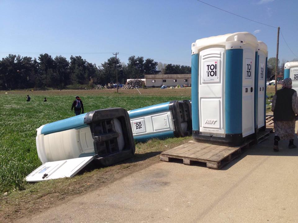 Gestern war der Wind so stark, dass Zelte weggeweht und sogar die ToiToi WCs umgestürzt sind.